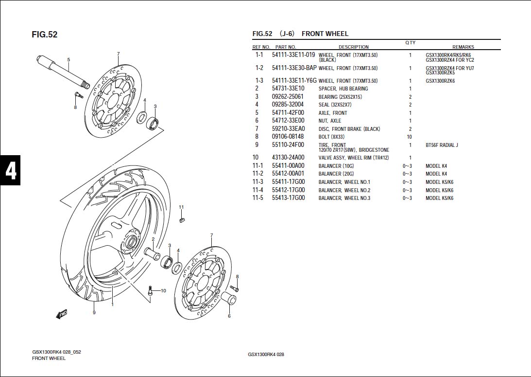 FIG.52(J-6)FRONT WHEEL